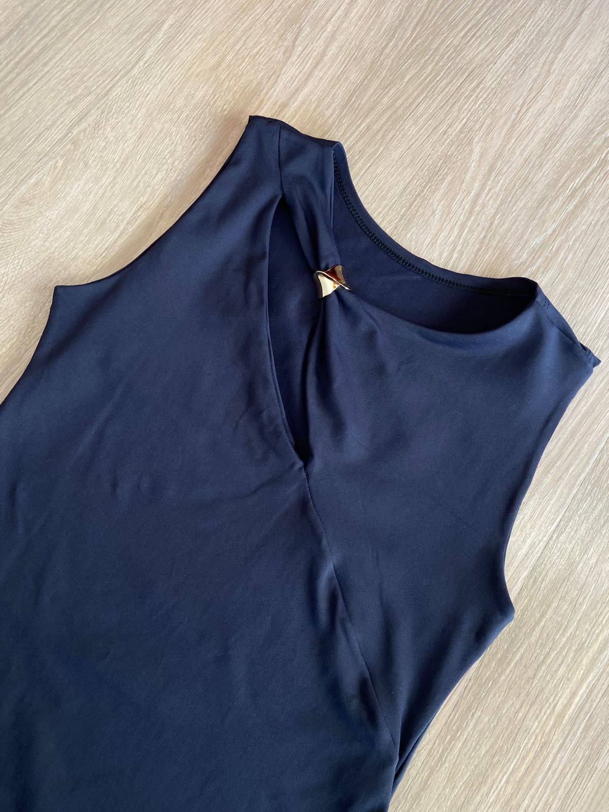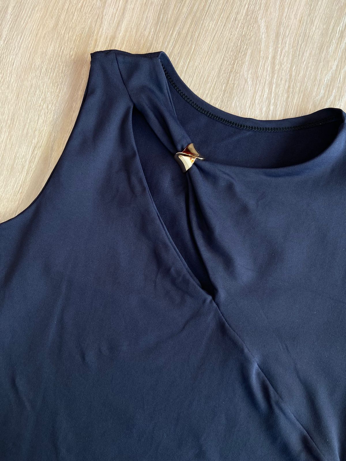 Confeccionado em poliamida premium, o tecido tem toque macio, caimento impecável e ótima elasticidade. O recorte frontal com detalhe dourado adiciona sofisticação e charme na medida certa.